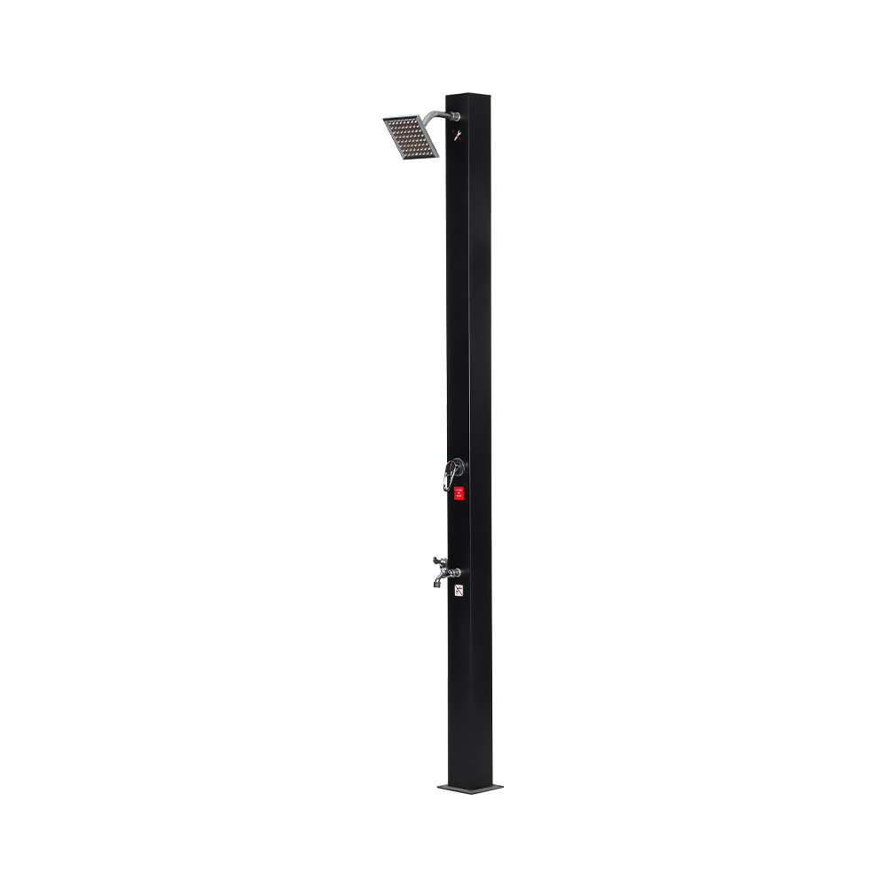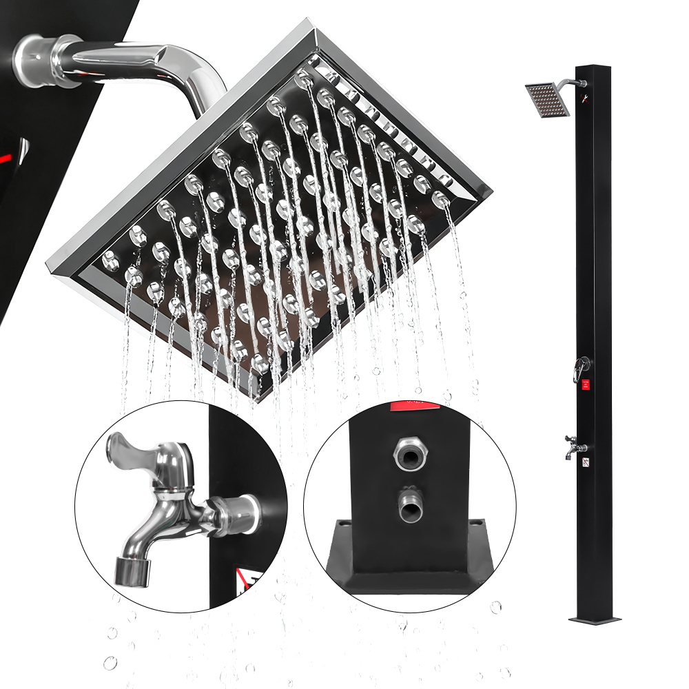Este chuveiro solar integrado ajustável à prova de UV LY18L08-SS foi cuidadosamente projetado para oferecer conforto e praticidade. Seu chuveiro de efeito chuva de tamanho generoso, equipado com uma junta esférica integrada, pode girar até 180°, permitindo ajustar o ângulo para uma experiência de banho agradável e refrescante. Fabricada em plástico resistente a UV, a unidade é durável e pode ser rapidamente desmontada para fácil transporte ou armazenamento quando não estiver em uso. A base robusta, feita de aço inoxidável, ABS, cobre e outros materiais confiáveis, garante uma configuração segura e estável mesmo em várias superfícies externas. Usar o chuveiro é simples: basta encher o tubo do chuveiro com uma mangueira de jardim padrão, deixar o sol aquecer naturalmente a água e depois usar a torneira integrada para ajustar a temperatura de acordo com sua preferência, criando uma experiência de banho ao ar livre conveniente e agradável.