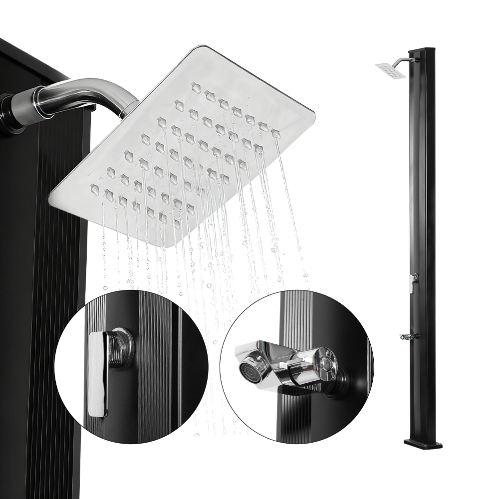 Este chuveiro de chuva externo LY30L02 com chuveiro de efeito chuva de alavanca única possui um tubo de chuveiro de alumínio de 30 litros, fornecendo bastante água para uma experiência de banho confortável e refrescante, tornando-o ideal para uso no jardim ou ao ar livre. A torneira misturadora monocomando permite um ajuste rápido e fácil da temperatura, permitindo aos usuários ajustar a temperatura da água de acordo com sua preferência. O grande chuveiro de efeito chuva possui uma junta esférica integrada que gira 180°, melhorando o efeito de resfriamento e simplificando a instalação, para maior comodidade e conforto.