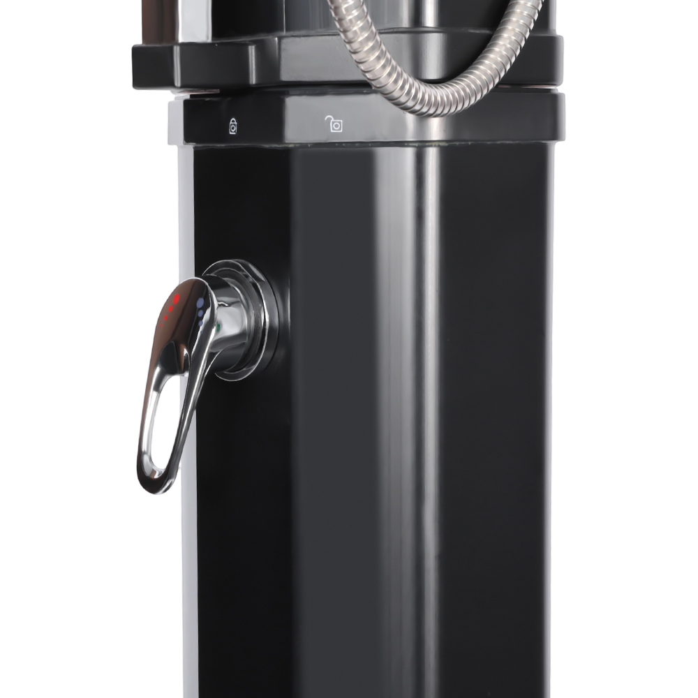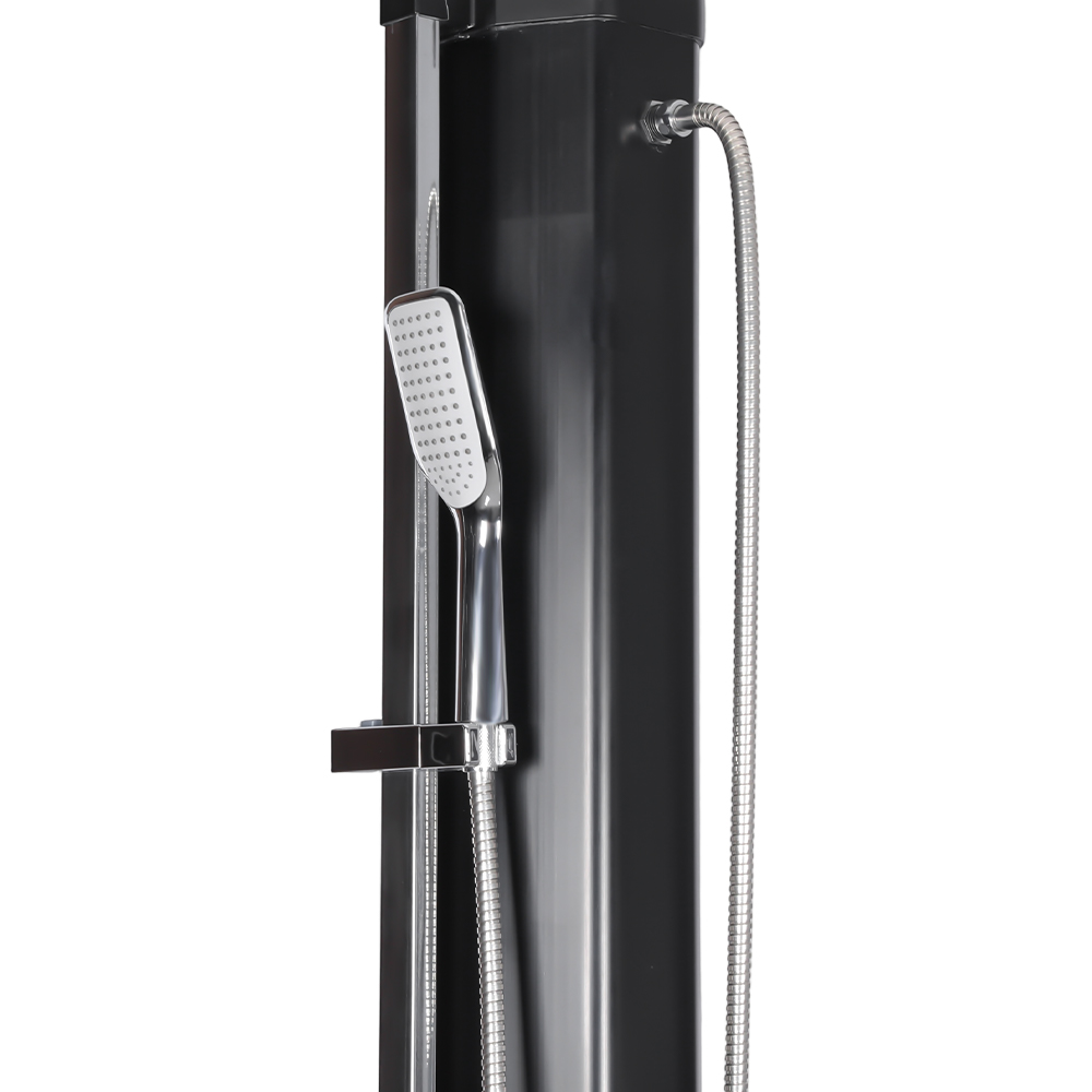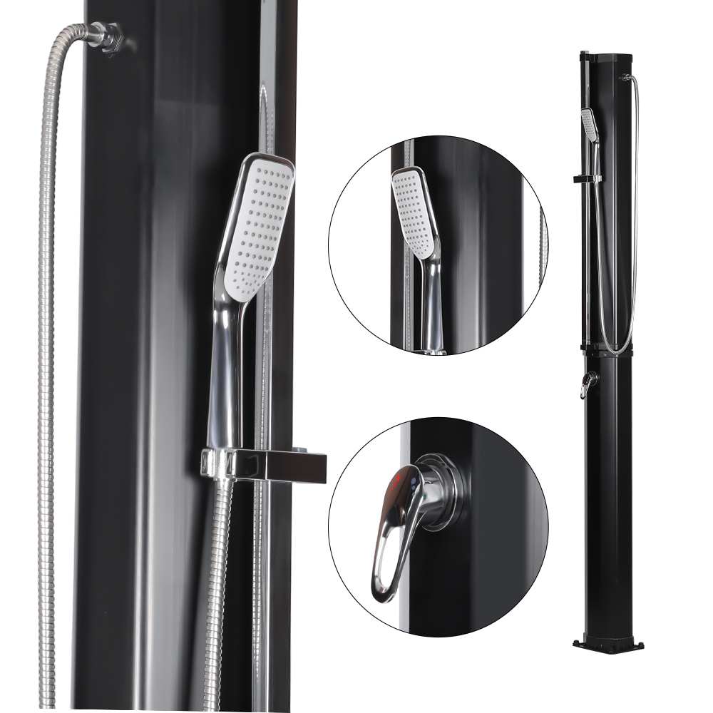 Este chuveiro solar de jardim de grande capacidade, estável e eficiente, LY35L08-HB, opera de forma eficiente usando a luz solar. Seu grande tubo de chuveiro de 35 litros aquece a água a aproximadamente 60°C sob luz solar suficiente. O reabastecimento é simples, não requer eletricidade e pode ser facilmente realizado conectando-se a uma mangueira de jardim padrão. Seu grande chuveiro de chuva proporciona uma experiência de resfriamento confortável e sua junta esférica integrada permite girar até 180° em vários ângulos. A instalação também é muito conveniente. A estrutura geral é feita de plástico durável e resistente a UV, suportando efetivamente a exposição prolongada ao ar livre. O chuveiro desmonta rapidamente para facilitar o transporte entre locais ou armazenamento fora da temporada. Uma base metálica robusta garante estabilidade e segurança uma vez instalada, permitindo-lhe desfrutar de um confortável duche exterior no seu jardim, junto à piscina ou no parque de campismo.