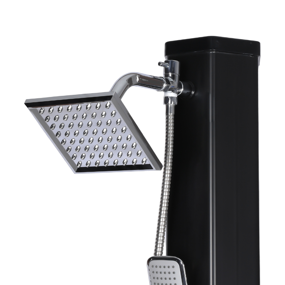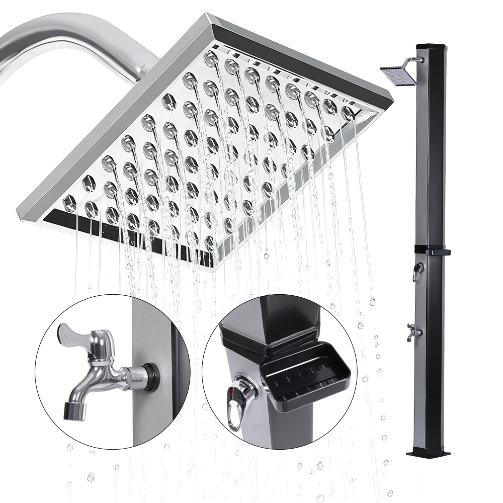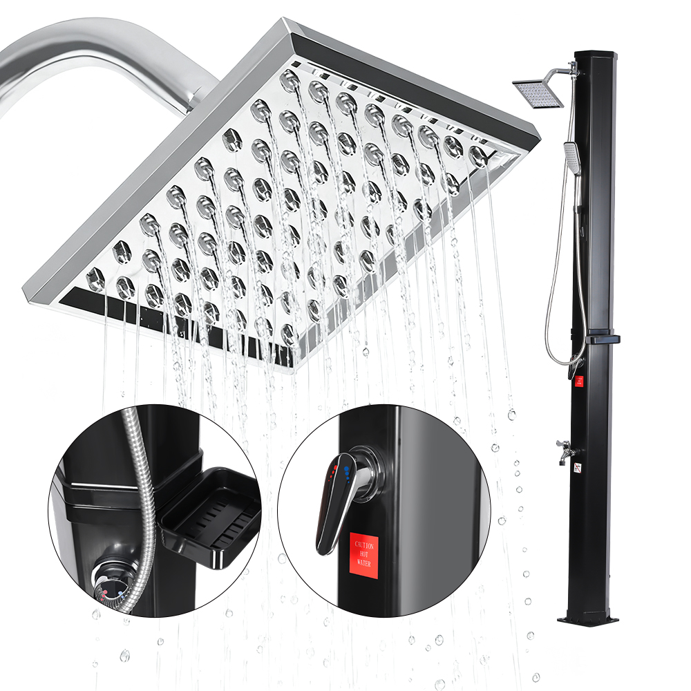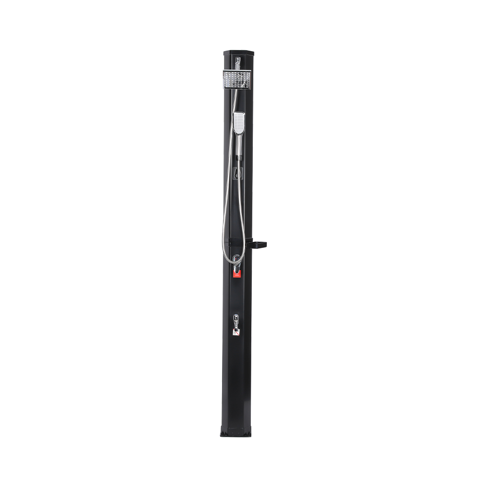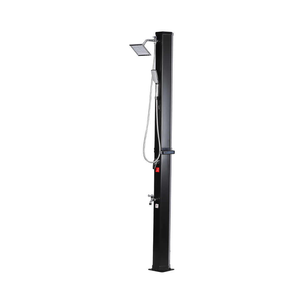 Este chuveiro solar externo LY35L09, fácil de transportar e transportar, foi projetado para uso versátil, oferecendo uma experiência confortável de banho quente no jardim, na piscina ou durante o acampamento. Não depende de nenhuma fonte de energia externa, aproveitando a conveniência do aquecimento natural pela luz solar. Possui uma conexão de mangueira de jardim padrão para enchimento rápido e fácil, e um tampão de drenagem permite esvaziar facilmente o tubo do chuveiro antes do inverno, evitando danos causados pela água acumulada. Seu design destacável permite uma desmontagem rápida e armazenamento compacto, tornando-o ideal para economizar espaço quando não estiver em uso, além de ser fácil de transportar e transportar, permitindo que você aproveite a comodidade de um chuveiro externo a qualquer hora e em qualquer lugar.