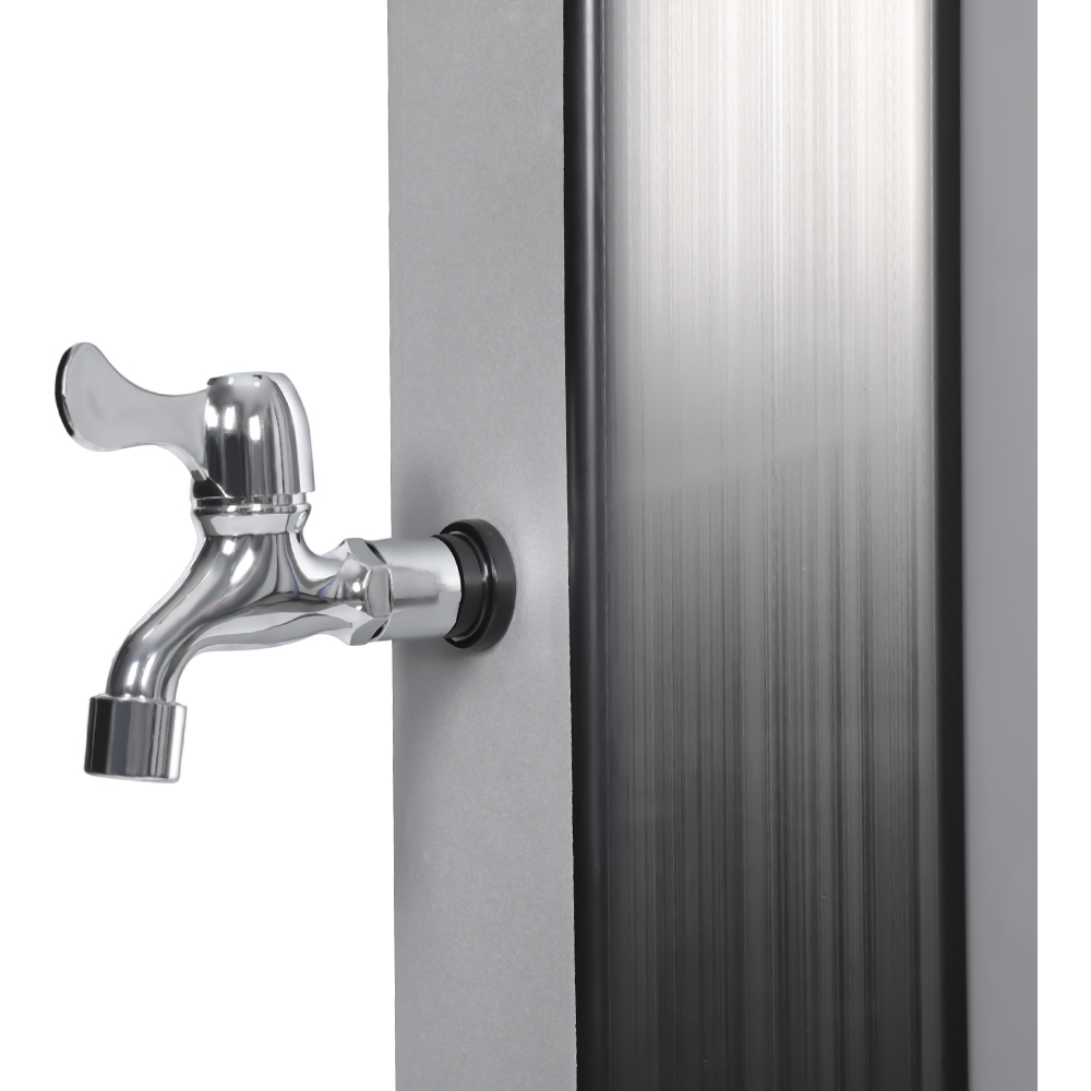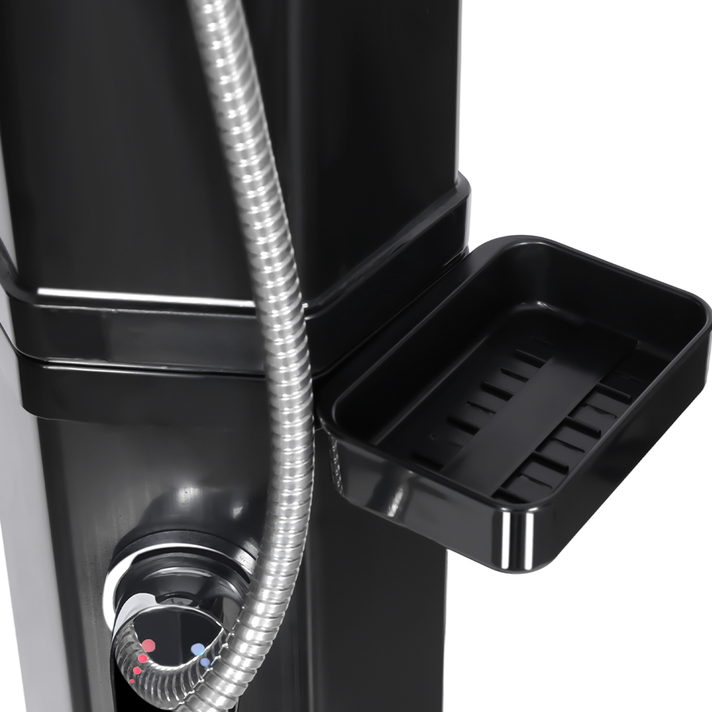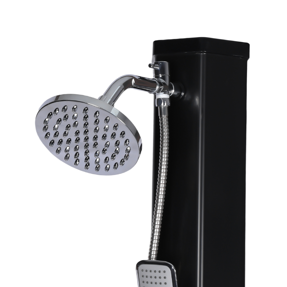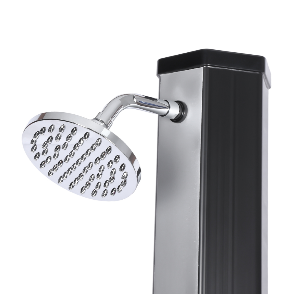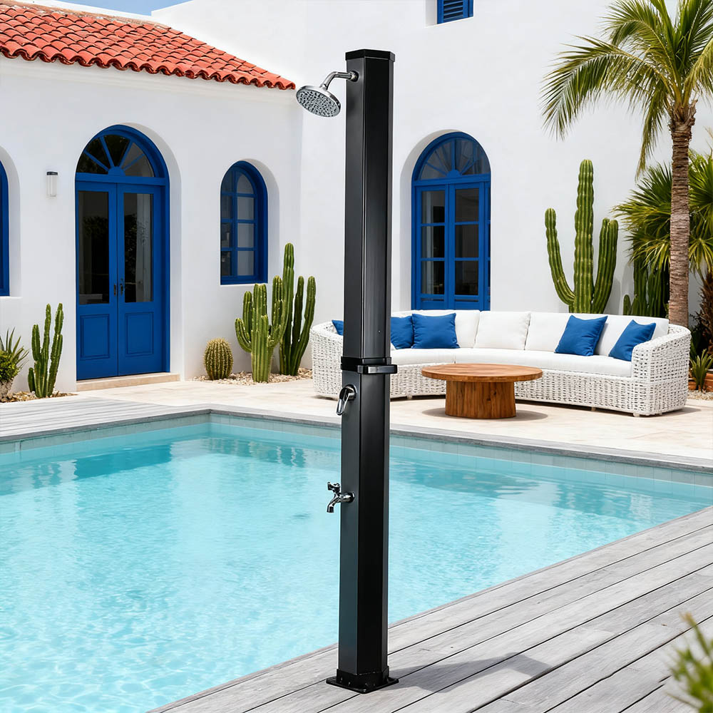 Este chuveiro solar externo LY35L09, fácil de transportar e transportar, foi projetado para uso versátil, oferecendo uma experiência confortável de banho quente no jardim, na piscina ou durante o acampamento. Não depende de nenhuma fonte de energia externa, aproveitando a conveniência do aquecimento natural pela luz solar. Possui uma conexão de mangueira de jardim padrão para enchimento rápido e fácil, e um tampão de drenagem permite esvaziar facilmente o tubo do chuveiro antes do inverno, evitando danos causados pela água acumulada. Seu design destacável permite uma desmontagem rápida e armazenamento compacto, tornando-o ideal para economizar espaço quando não estiver em uso, além de ser fácil de transportar e transportar, permitindo que você aproveite a comodidade de um chuveiro externo a qualquer hora e em qualquer lugar.
