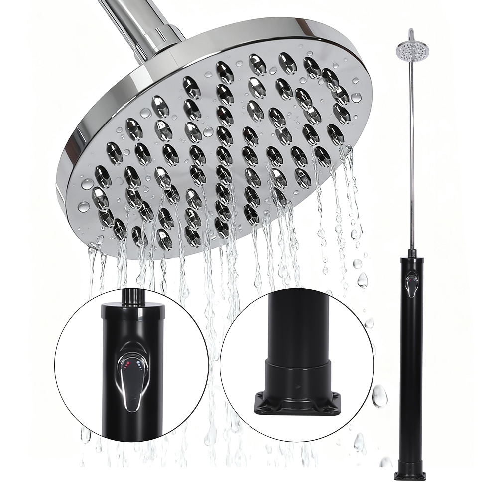 Este chuveiro solar de jardim para piscinas exteriores LY08L02 8L é a solução ideal para utilização no exterior, seja no jardim, junto à piscina ou em acampamentos. Alimentado exclusivamente pela luz solar, possui um chuveiro de 8 litros que aquece a água até 60°C, sem necessidade de energia elétrica. O sistema foi projetado para ser fácil de usar, com uma torneira misturadora metálica monocomando que mistura a água quente do tubo do chuveiro com a água fria da mangueira de jardim, permitindo um ajuste de temperatura suave e contínuo. A base robusta de aço inoxidável garante que a unidade permaneça estável e segura no lugar, proporcionando desempenho confiável para suas necessidades externas de água. Basta conectar uma mangueira de jardim padrão para encher o tubo do chuveiro e desfrutar de água quente onde quer que esteja.